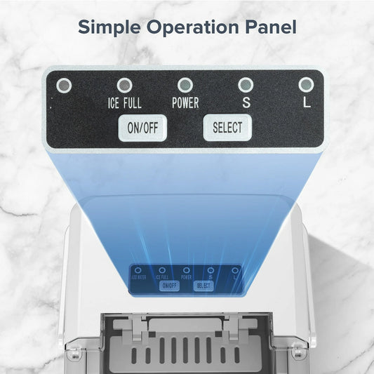Countertop Portable Ice Maker, 8 Cubes Ready in 6 Mins, Self-Cleaning with Handle, Ice Scoop, 2 Sizes of Bullet Ice Cubes, for Home/Kitchen/Office-White