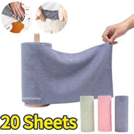 Reusable Cleaning Wipe Household Kitchen Cloth Microfiber Towel Rolls Dish Rags Wash Paper Towel Replacement 1 Roll of 20 Sheets